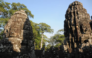 バイヨンのなかでも最大の見どころ上部テラスには四面仏塔が並びます。慈悲深い微笑みをたたえた四面仏塔は観世菩薩を彫ったとされており、「クメールの微笑み」とも呼ばれます。