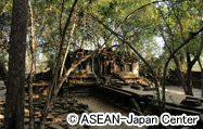 構造上の類似点から「東のアンコールワット」と呼ばれるベンメリア遺跡。熱帯樹の茂る密林に覆われた神秘的な遺跡で、修復・樹木の伐採があまり行われていないので、発見当時の雰囲気を味わえます。