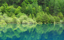瑠璃色の水面と静寂の湖面が美しい九寨溝。大小114の湖、渓流と瀑布、そしてチベット族野村が点在しています。エメラルド色に輝く湖面には新緑、紅葉、雪景色と四季折々の美しさが広がる中国を代表する絶景です。