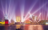シンフォニー・オブ・ライツは、香港のビル群を舞台に毎晩20:00より13分間繰り広げられる、光と音のショー。香港島と九龍半島のウォーターフロントにある高層ビルに設置されたサーチライトがハーバーを彩ります。