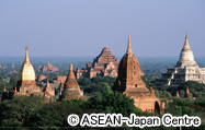 バガン遺跡はマンダレーの南西160kmにある、世界三大仏教遺跡のひとつ。建造物の大多数は西暦1000年代から1200年代に建てられたもので、白亜のアーナンダ寺院や、シュエジゴン・パゴダなどミャンマーを代表する貴重な文化遺産が点在しています。