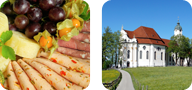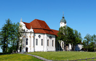 世界遺産のヴィース教会はヨーロッパ随一とも言われるロココ様式の内装を擁する教会です。