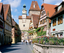 ロマンティック街道とはドイツのヴュルツブルクからフュッセンまでの366kmのこと。街道沿いには中世の面影を残した小さな街や美しい古城が点在しています。メルヘンな雰囲気が漂い、新緑の春、日が長くすがすがしい夏、紅葉が美しい秋、クリスマスの冬…季節ごとに様々な顔を見ます。