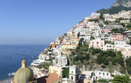 ソレントからサレルノまで50kmに渡り続くアマルフィ海岸。小さな街が点在しています。斜面に立ち並ぶ家々など南イタリアの風光明媚な景色が続きます。