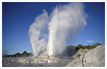 熱水を吹き出す間欠泉や温泉、沸騰する泥沼など一面に湯気が立ち込める広大な地熱地帯ロトルアでは地熱ウォーキングも盛んです。名物の地熱を利用した蒸しパン、クマラパンもご賞味あれ♪