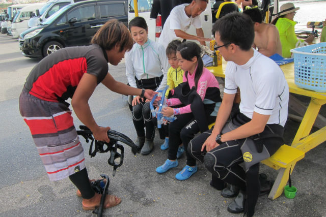 シュノーケルコースでは少人数制で開催しておりますので小さなお子様は勿論、初めての方や泳げない方にも安心してご参加頂けます。