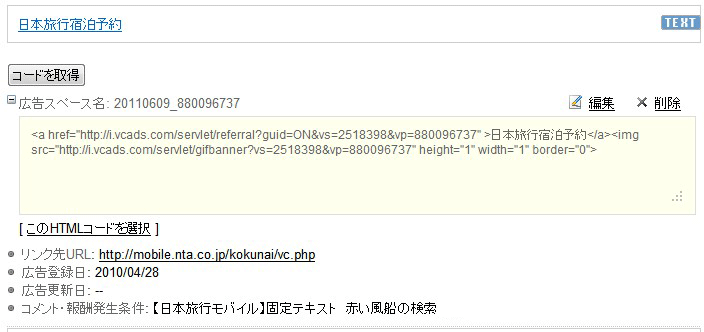 - 1. テキストリンクで広告スペースを作成します。テキストは自由リンクを選択してください。