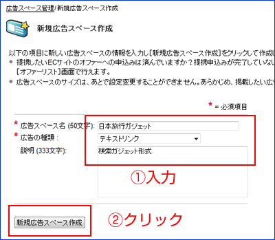 1-B. 提携承認されたら広告スペースを作成します