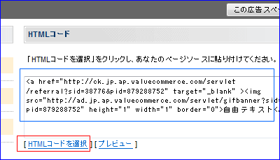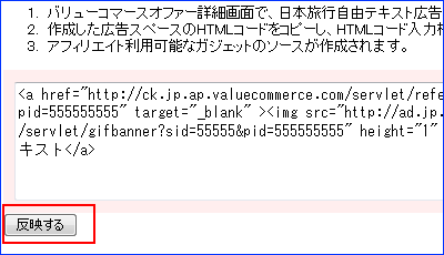 メモ帳などに貼り付けたHTMLコードをピンク色で囲まれたテキストボックスに貼りつけます。