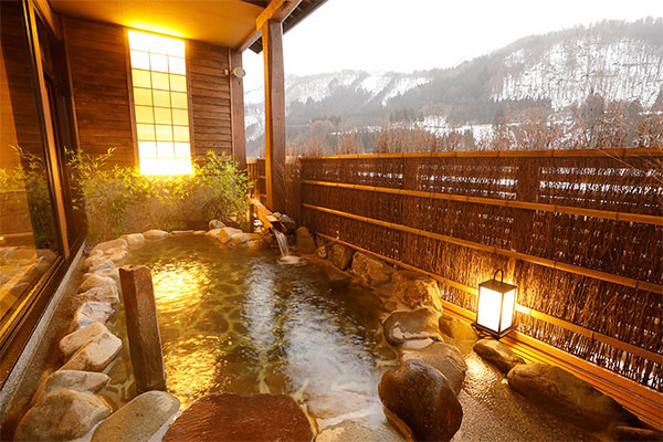 世界遺産白川郷合掌集落より少し離れた場所にある全館畳敷きの温泉宿。