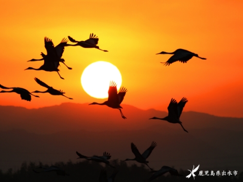 - 毎年10月中旬から12月頃にかけて、1万羽を超えるツルが渡来し、3月頃まで越冬します。その数と種類の多さは日本一と言われており、優雅に羽を広げて飛び立つ様子は圧巻です。「鹿児島県のツル及びその渡来地」として国の特別天然記念物にも指定されています。