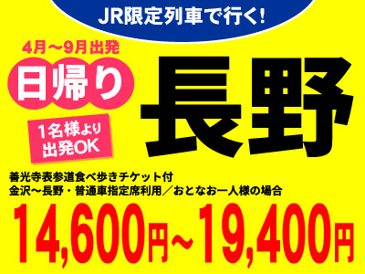 日帰り特集!往復JRと、現地の観光に便利なクーポン付のプラン。