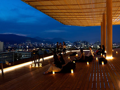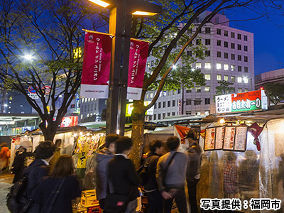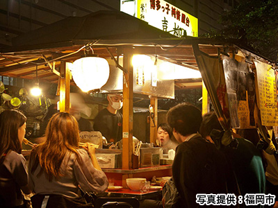 (左)博多中洲・屋台、原爆ドーム、(右)博多駅、弥山