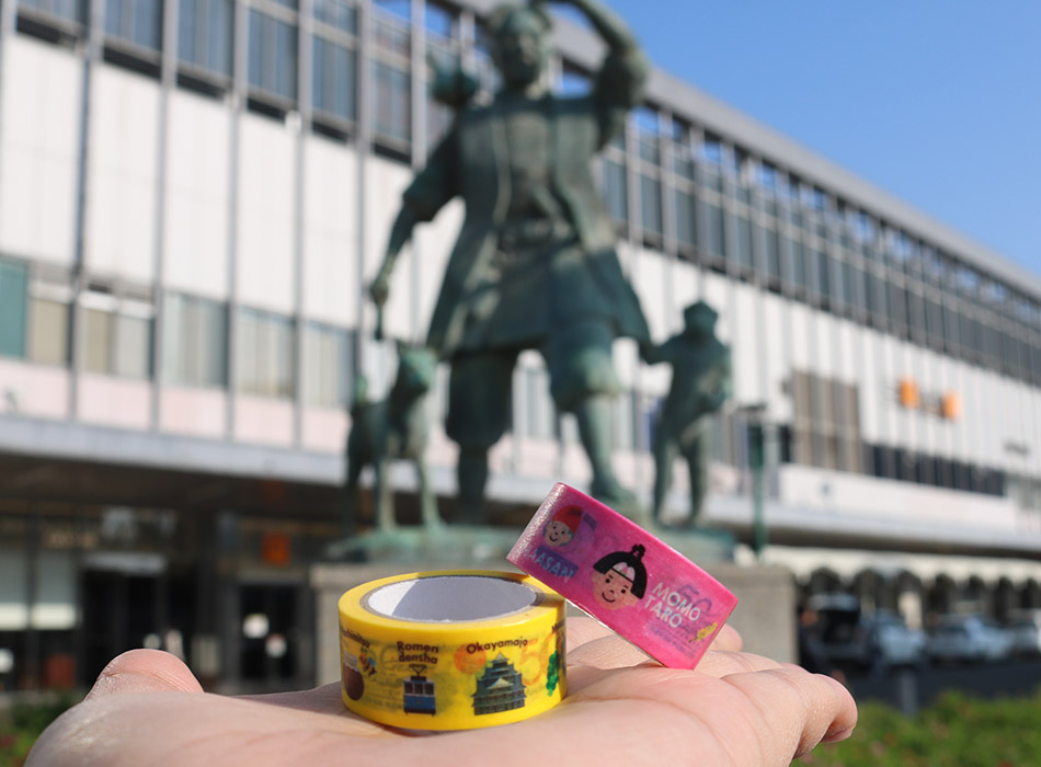 岡山の代表的な観光素材や50周年のロゴを使ったデザインでオリジナルマスキングテープを作成