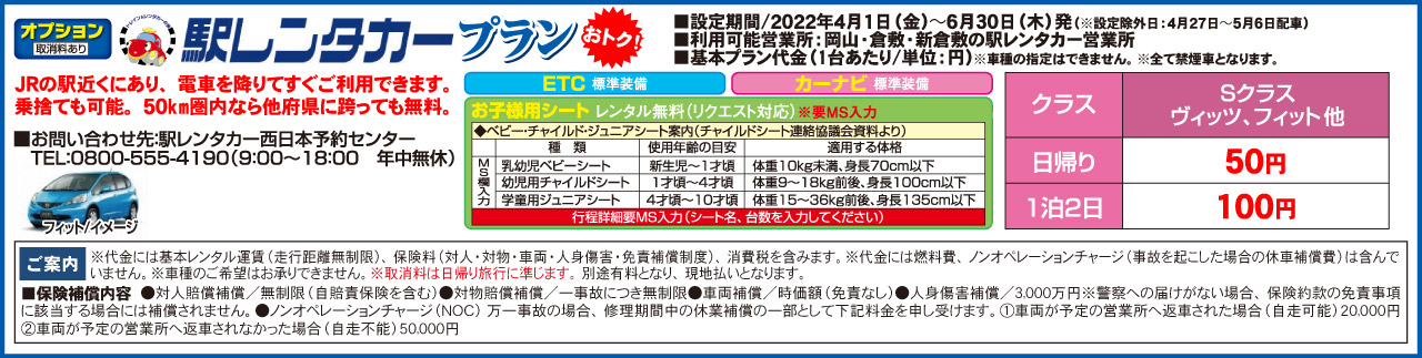 【山陽新幹線岡山開業50周年キャンペーン JR駅レンタカーご予約方法】
