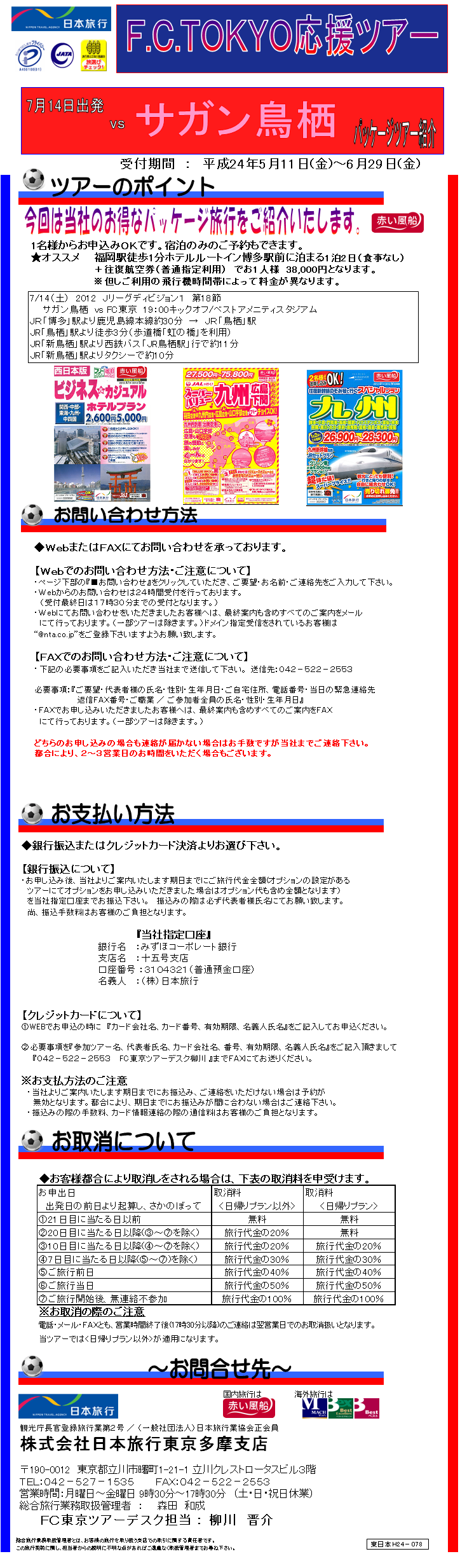 日本旅行企画・実施 FC東京オフィシャル応援ツアーご紹介