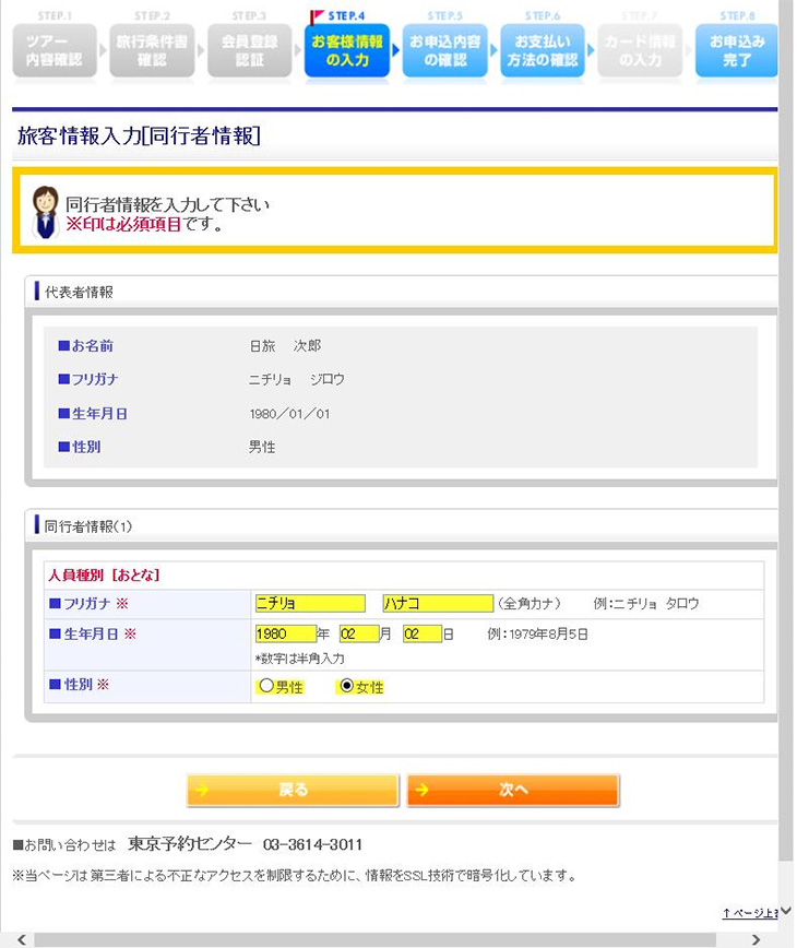 お申込みの手順 4. 旅客情報入力(同行者情報)