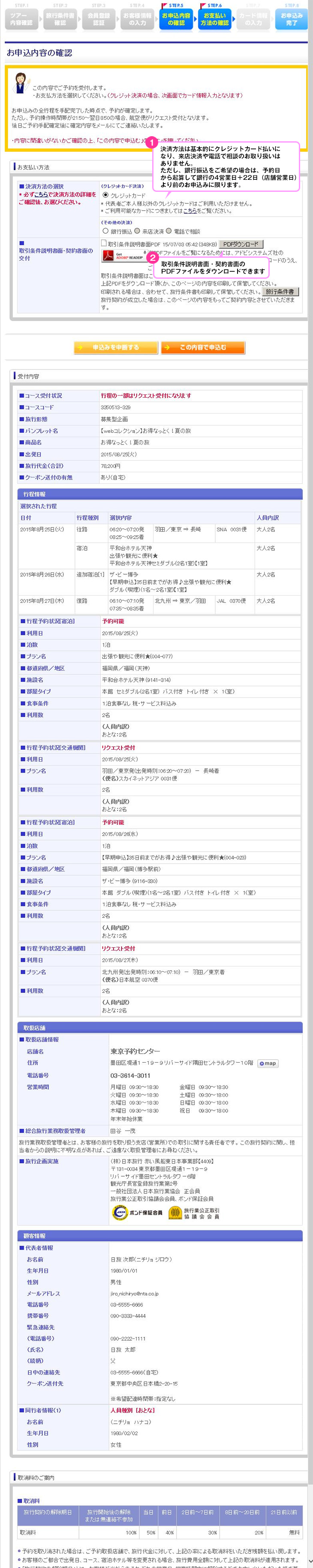 お申込みの手順 6. お申込内容の確認