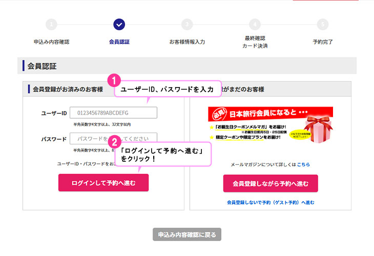 お申込みの手順 2.会員認証