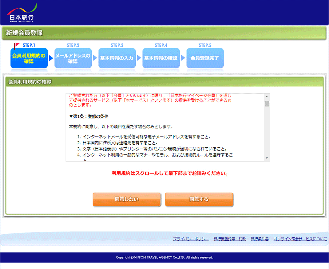 - 規約をお読みの上、「同意する」をクリックして、次へ進みます。