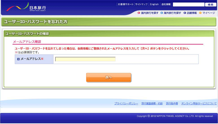 件名「<日本旅行>会員登録ユーザーID・仮パスワード発行のお知らせ」でお送りします。