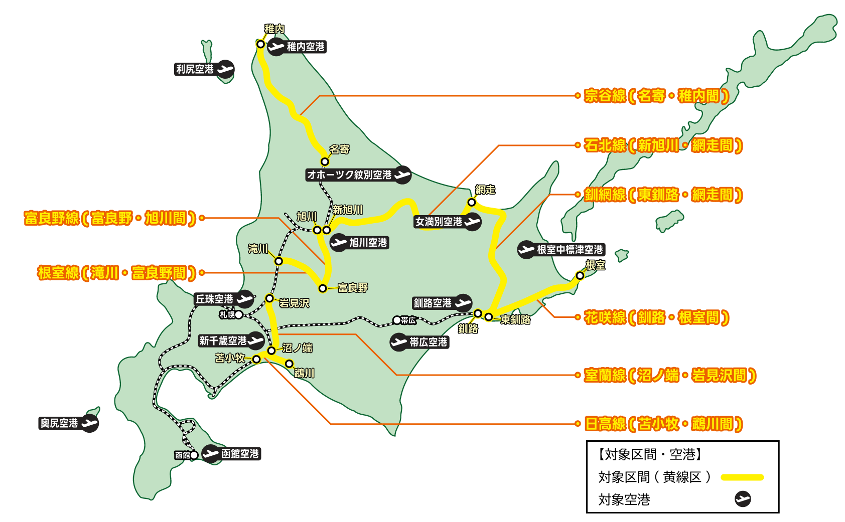- 新千歳空港/丘珠空港/旭川空港/稚内空港/オホーツク紋別空港/女満別空港/
