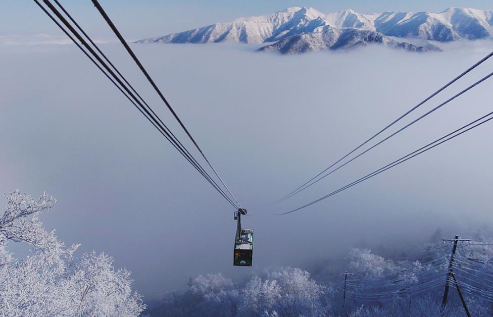 日本国内で唯一森林限界(高い木が森林状態で分布する限界線)の上を走り、高山帯まで運行するロープウェイ。標高1,100mの旭岳温泉から旭岳の五合目にあたる標高1,600mまでを約10分で結びます。
