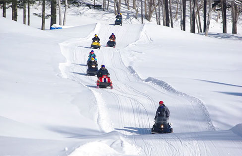 一面の銀世界をスノーモービルで疾走!!スノーモービルの操縦に運転免許は不要です。