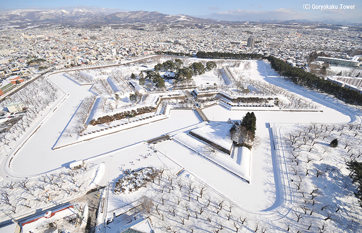 特別史跡五稜郭の美しい星形と、函館市街や函館山の眺望がお楽しみいただけます。