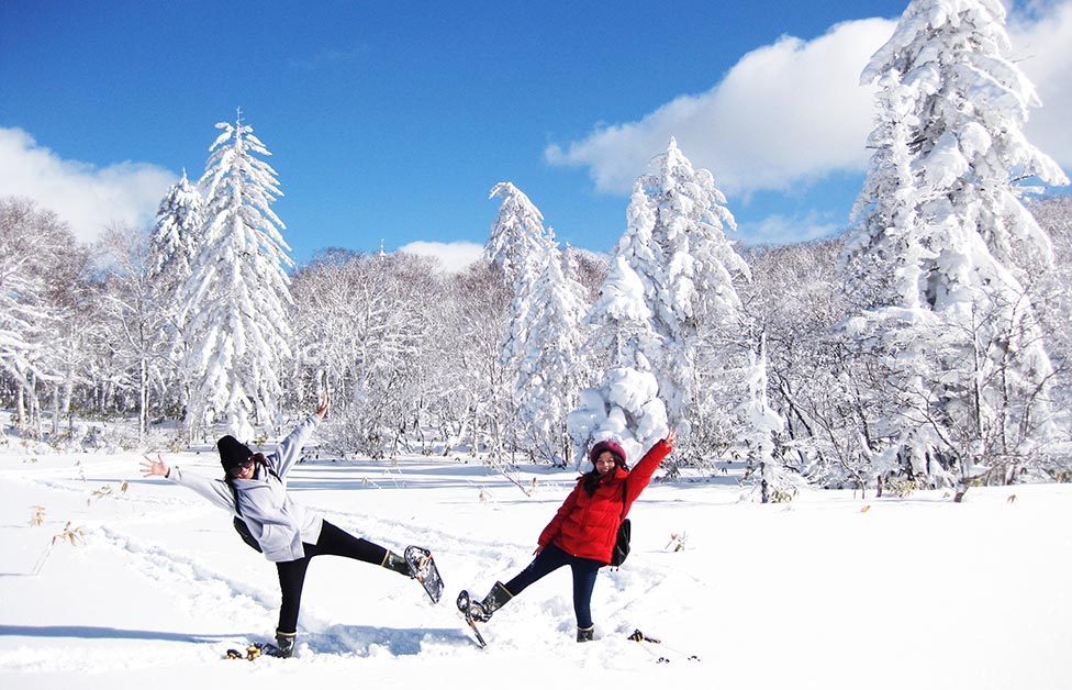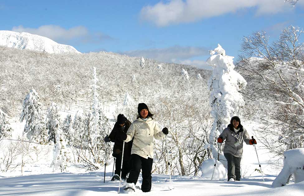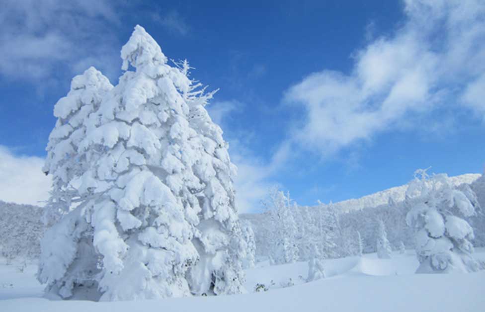 登別温泉と洞爺湖を結ぶオロフレ峠へ。雪氷をまとって光り輝く幻想的な世界をスノーシューを装着してのんびりお散歩しましょう。