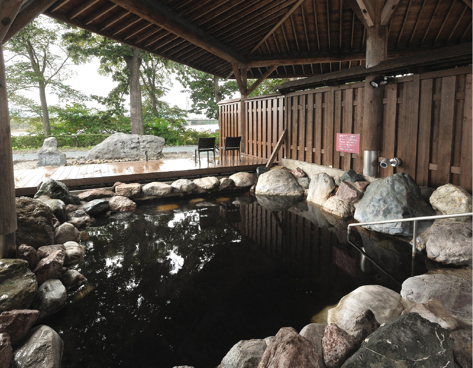 雄大な十勝川の流れを眺めながら、湯上りを十勝スタイルで寛ぐひと時。湯上りのモール温泉ビールやソフトクリームなどをご用意(有料)