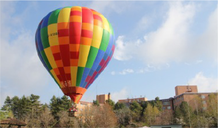 十勝平野の広さを体感できる熱気球の係留フライトを敷地内のバルーン広場で体験。
