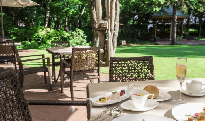 時には小鳥やリスが訪れるホテルの庭を見渡すことができ、夏季はテラスもご利用できます。