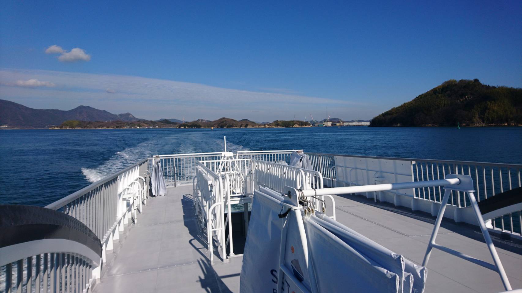 尾道駅前桟橋(13:15発)~~瀬戸田(13:55着/14:05発)~~井口(14:20着/14:55発)~~瀬戸田(15:10着/15:15発)~~尾道駅前桟橋(15:55着)