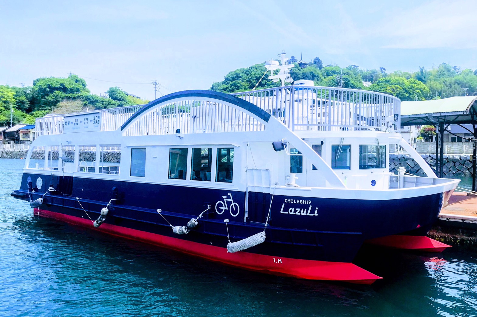 「尾道駅前桟橋」に停泊しているサイクルシップラズリ船内スタッフにマイページ(予約確認)をご提示ください。「しまなみクルージングパス」をお渡しします。