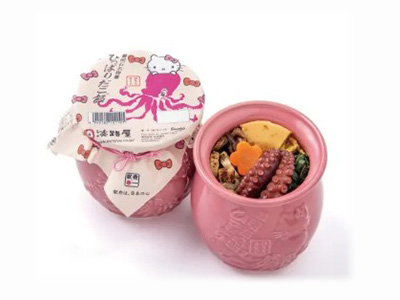 おとなの方には「ハローキティ」と「ひっぱりだこ飯」がコラボした、「ハローキティ版ひっぱりだこ飯」をご用意。壺はオリジナルデザインのピンクの壺です。