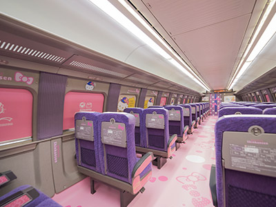 - ①2026年春に運行終了が発表されている「ハローキティ新幹線」乗車を満喫!