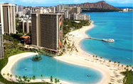 ダイヤモンドヘッドを望むハワイの代名詞的スポット。ビーチアクティビティはもちろん、ただただ散歩するだけでも楽しい、ワイキキの中心となるエリアです。