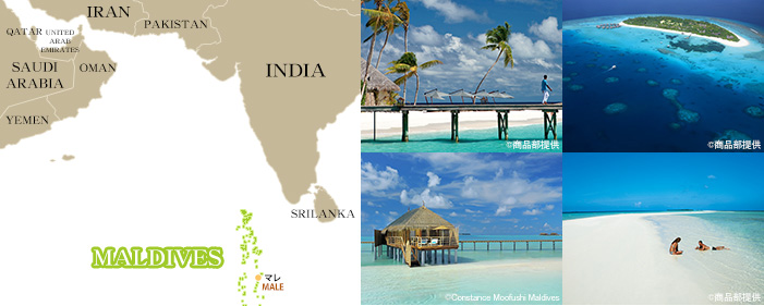 魅惑のリゾート・モルディブはインド洋を南北860キロ、東西118キロにわたって広がる26の環礁から成り、そこに約1,200もの島が存在しています。 島々は世界有数のリゾートとなっています。