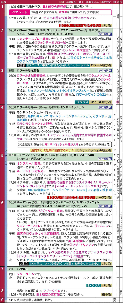 こちらのコースはお母様と娘様といった親子でのご参加が多いコースです。女性の厳しい視点から選ばれ続けてきたロングセラーコースになります。ポイントは何といってもロワール地方でのシャトーホテルへ2連泊、パリの名門ホテル・インターコンチネンタルパリ・ル・グランに2連泊し、優雅に華麗にフランス旅行をお楽しみいただける点です。もちろん、このコースの魅力は宿泊だけではありません。お食事もホテルのメインダイニングや老舗のオーベルジュといった、雰囲気も同時にお楽しみいただけるレストランを厳選しました。さらにこのコースにはヨーロッパを熟知した添乗員が同行します。エキスパートのご案内にワンランク上の満足をお約束します。