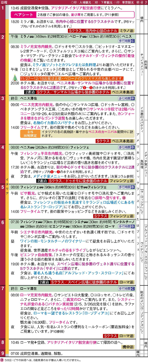 | ビジネスクラス旅行代金 | 669,000円〜829,000円 | プレミアムエコノミークラス 追加代金 |