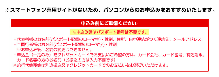 - ・1回の入力でお申込みいただけるのは、同じお申込み内容(日程・発着地・コース・ホテルクラス)ご希望の5名様までです。