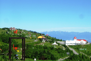 標高2,000mにある野外彫刻美術館。4万坪の屋外広場に、国内外の現代彫刻家の作品が展示されています。春から秋にかけ、約200種類もの高山植物が可憐に咲き誇ります。