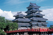 現存する日本最古の国宝の城。烏城とも呼ばれ、戦国時代の鉄砲戦を想定した天守閣は漆黒となっています。北アルプスをバックに堂々とした姿は、松本のシンボルとして愛されています。