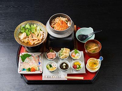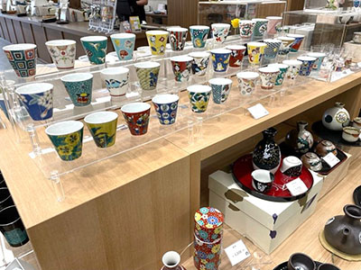 九谷焼・和食器専門店の「九谷満月」は、絵付け体験やろくろ体験ができ、大人もこどもも楽しめるスポットです。2024年夏に「かま飯 まんぷく&カフェ」がオープン。ガラス張りのきれいな店内では、北陸の旬の味覚を九谷焼のおしゃれな器で召し上がっていただけます。おすすめは九谷豆皿九種に盛り付けた季節のおばんざい料理を楽しめる「まんぷく膳」!種類の多い釜飯や甘味もおすすめです。