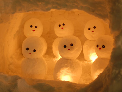 雪深い白峰で毎年1~2月頃に開催される「雪だるままつり」は、地域住民総出で心を込めて作った雪だるまを見ながら散策できます。雪だるまは一つ一つ個性があり見ている人を笑顔にしてくれます。また夕暮れ時、雪だるまに灯りがともると、まるで雪だるまの村が現れたような幻想的な光景は必見です。