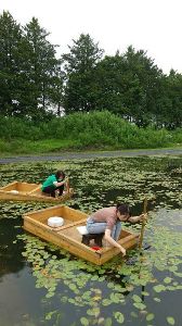 - 小舟に乗ってジュンサイを摘み取る
