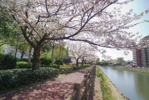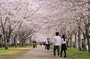 - 2kmにわたる桜並木が花見客を出迎える