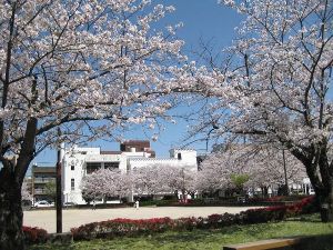 - 公園の桜が町に彩りと潤いを与える