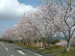 - 桜の帯が春風に揺れる